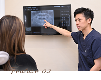 ご覧の皆様の中には「治療の説明をあまりされたことがない」、「自分の治療は一体いつ終わるんだろう?」などの経験をされたことがあるのではないでしょうか。患者様に現在の症状を正確にお伝えし、その治療に最も効率的な方法を提案した上で患者様と共通理解の上にしっかりとした治療計画を立て治療を進めて行く必要があります。当院では、患者様のお悩みに耳を傾け、様々な資料を用いわかりやすい説明を行い、患者様に合った最善の治療計画をつくり、それに基づいて治療を進めて行く事を大切にしております。